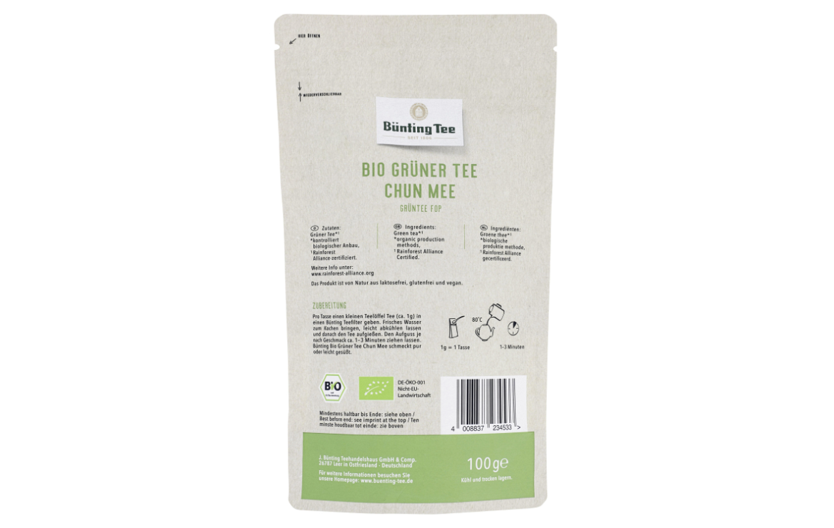 Bünting Bio Grüntee Chun Mee 100g – Zart-herber Genuss
