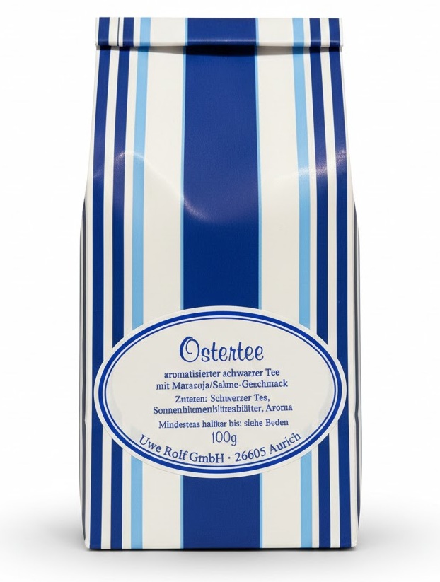 Frühlingsgefühle in der Tasse! Unser Ostertee ist eine exzellente Schwarzteemischung, die den exotisch-fruchtigen Geschmack von Maracuja mit einer herrlich cremigen Sahnenote vereint. Ein Muss für jede Ostertafel.