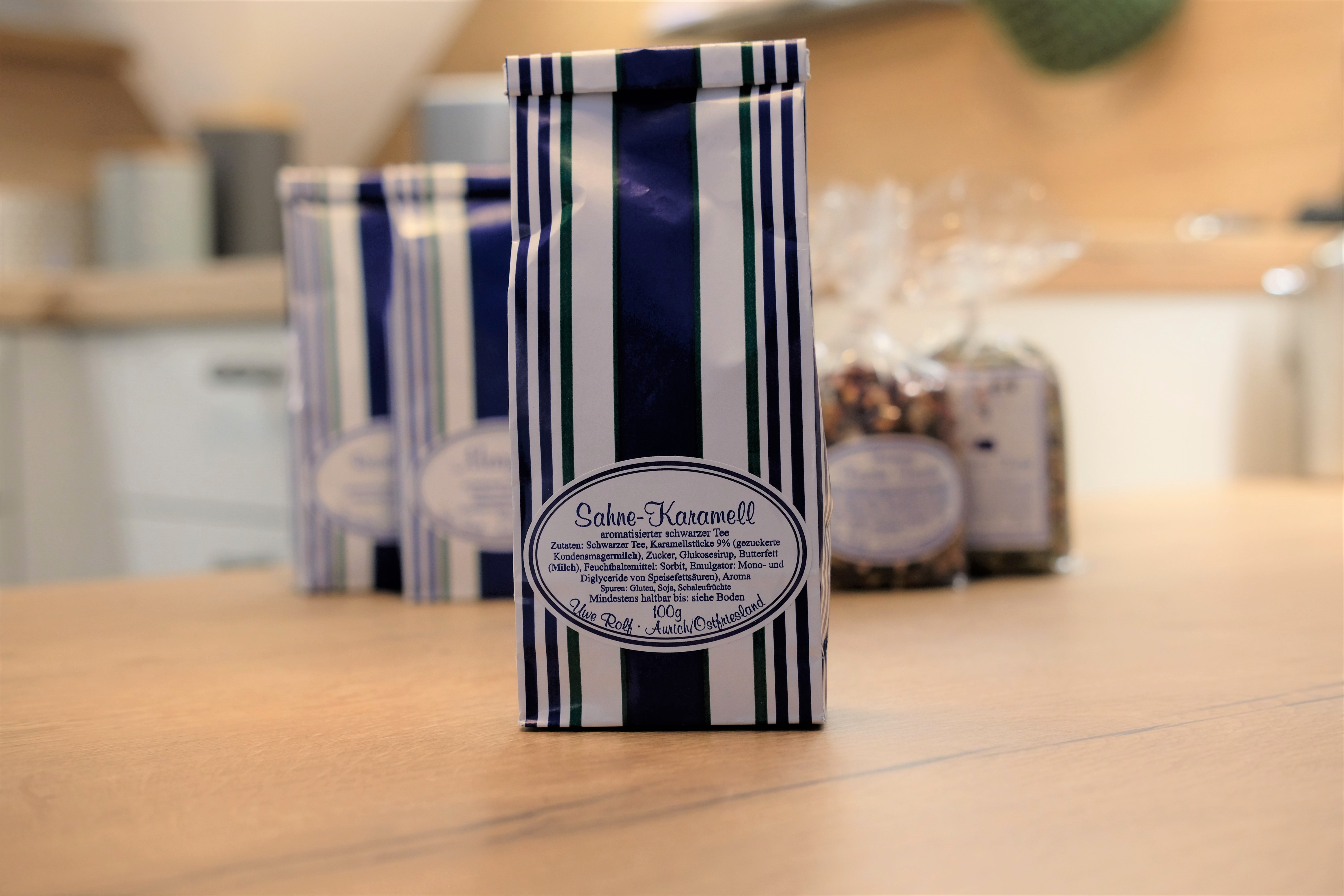 Zutaten: Aromatisierter schwarzer Tee, Karamellstücke (Magerkondensmilch, Zucker Glukosesirup, Butterfett, Sorbitsirup, Emulgator: E471), Aroma